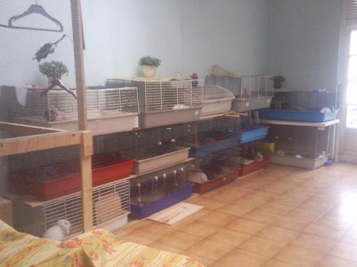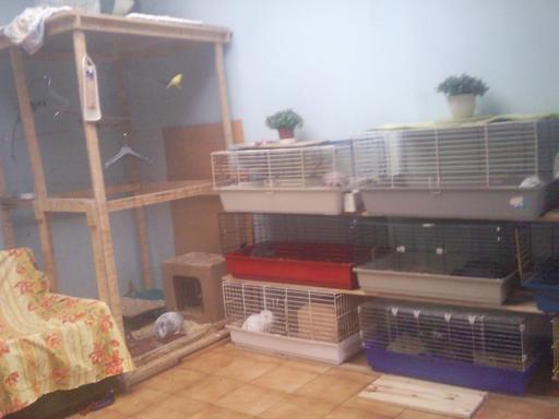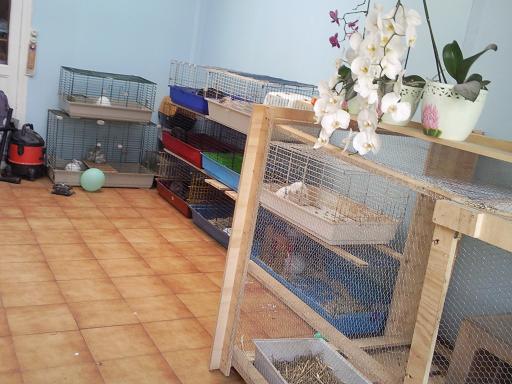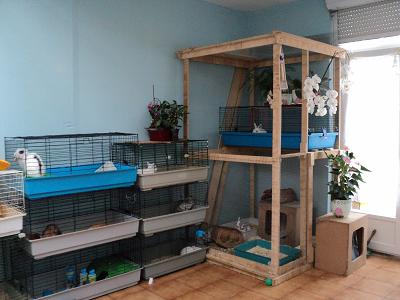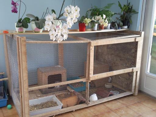 -La salle ou ils vivent, est éclairèe naturellement,protègèe des courants d'air et du froid.J'y ai un accés direct de ma cuisine car mes lapins vivent avec nous